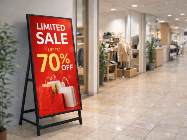 内容をスキップ 【店舗に必須な中型サイネージ②】工事不要で即戦力!移動自在なイーゼルサイネージ