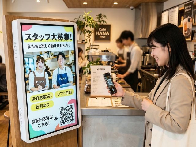 内容をスキップ 【店舗に必須な中型サイネージ⑤】広告費を削減!店舗直結型リクルートサイネージ